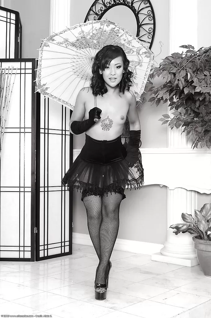 - 4. Азиатская модель в стиле пинап Петра Лили Так держит воздушные шары, выставляя напоказ свои маленькие сиськи.