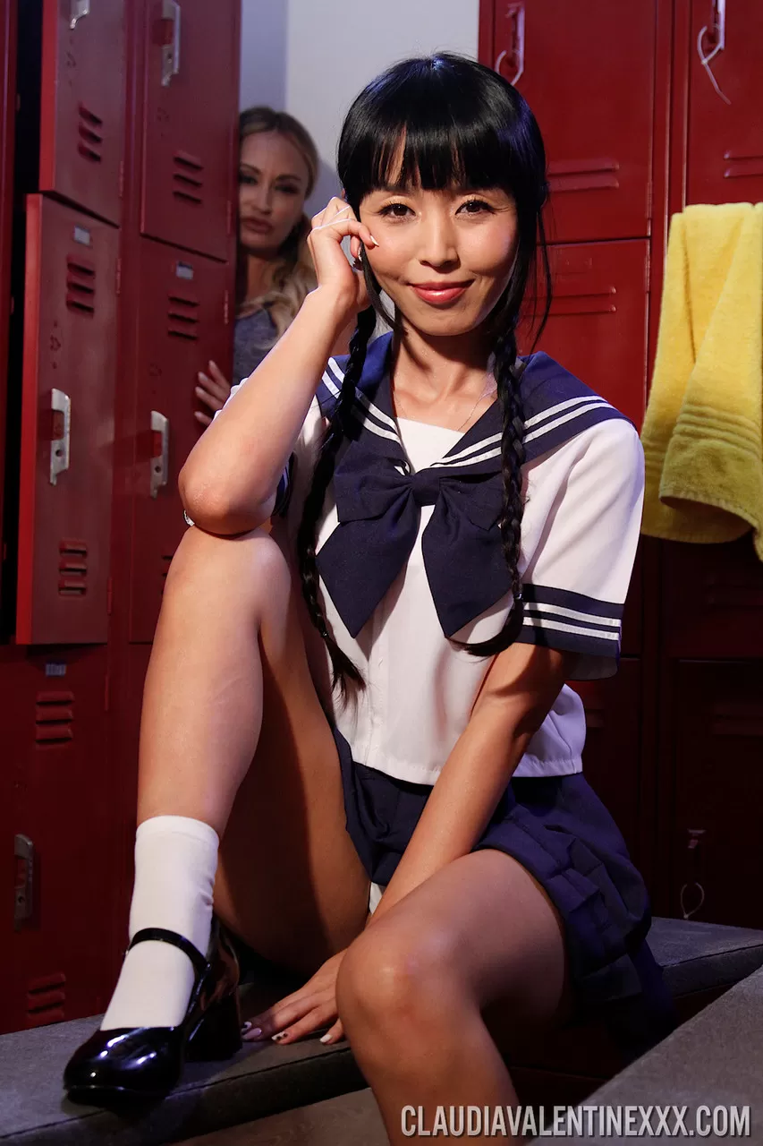 - 3. Сексуальная японская милфа Джун Кусанаги освобождает свои маленькие сиськи от платья.