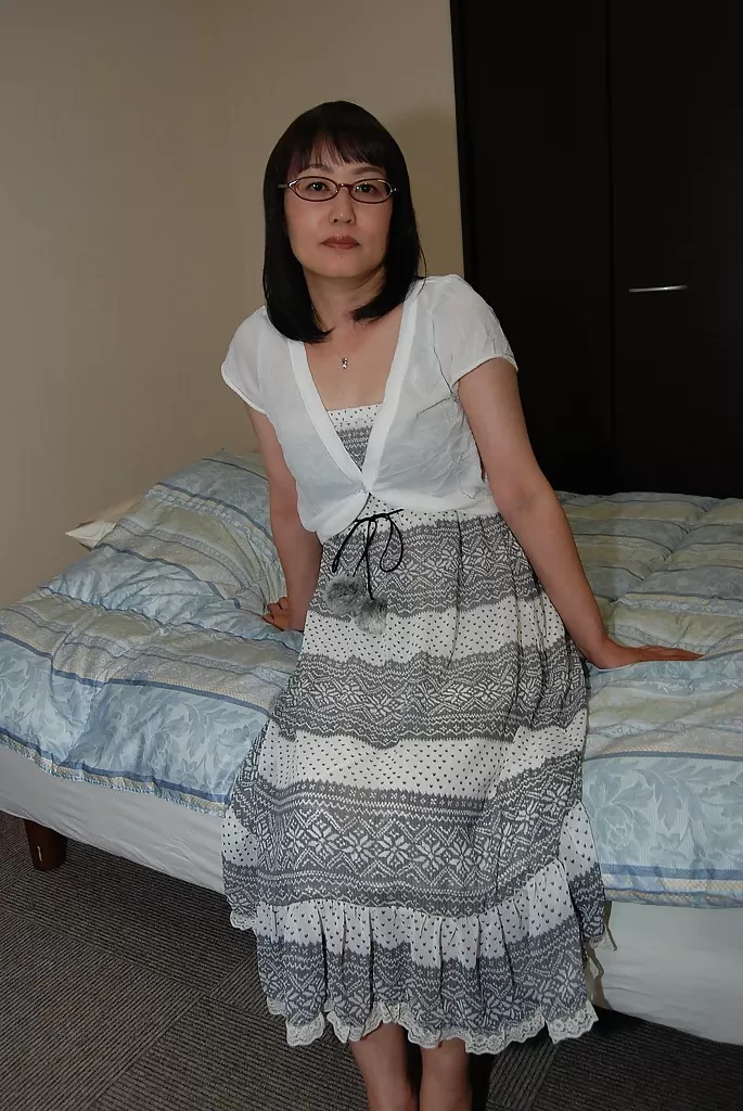 - 4. Стройная зрелая японка Эмико Коике наклоняется, чтобы позировать в белом платье.
