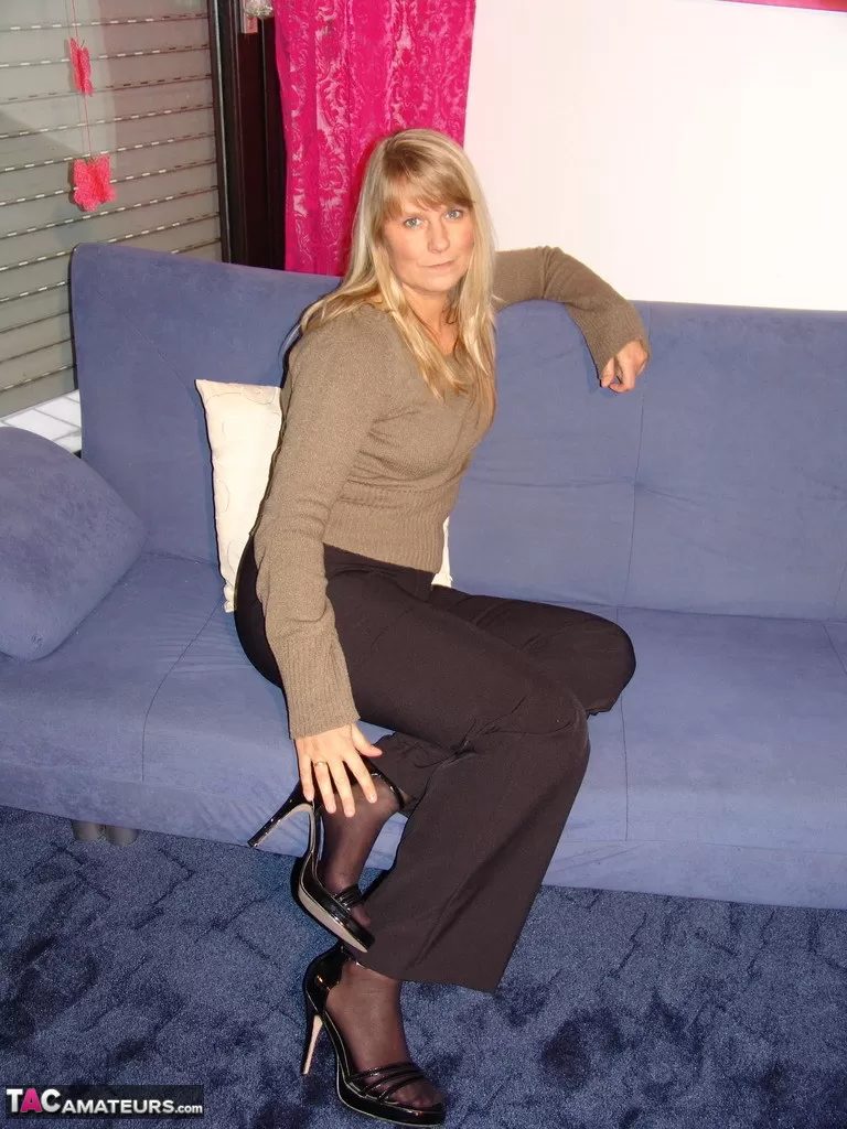 - 5. Чертовски возбужденная зрелая блондинка Лори снимает свои сексуальные черные трусики.