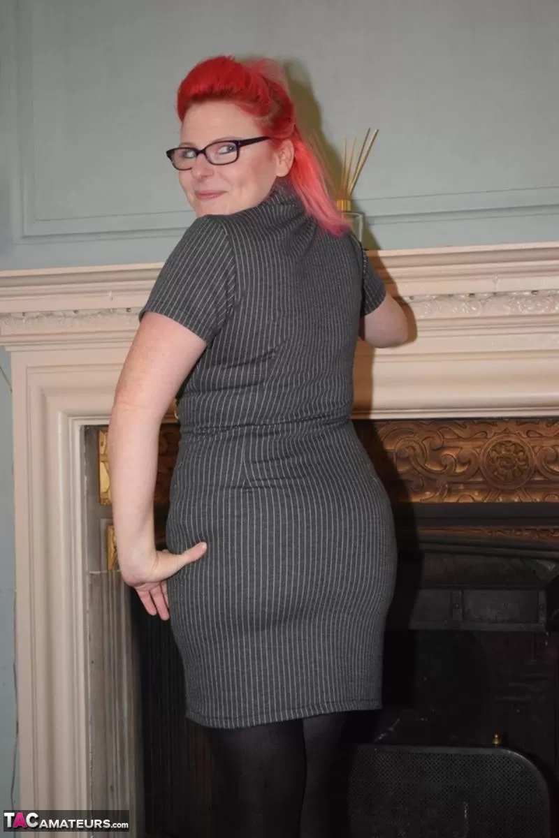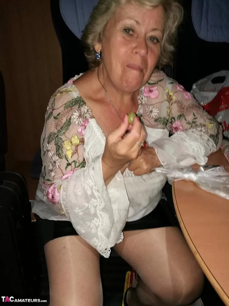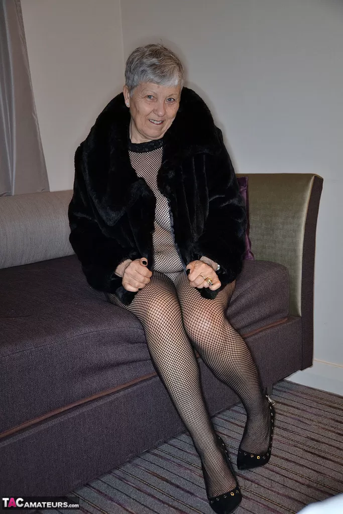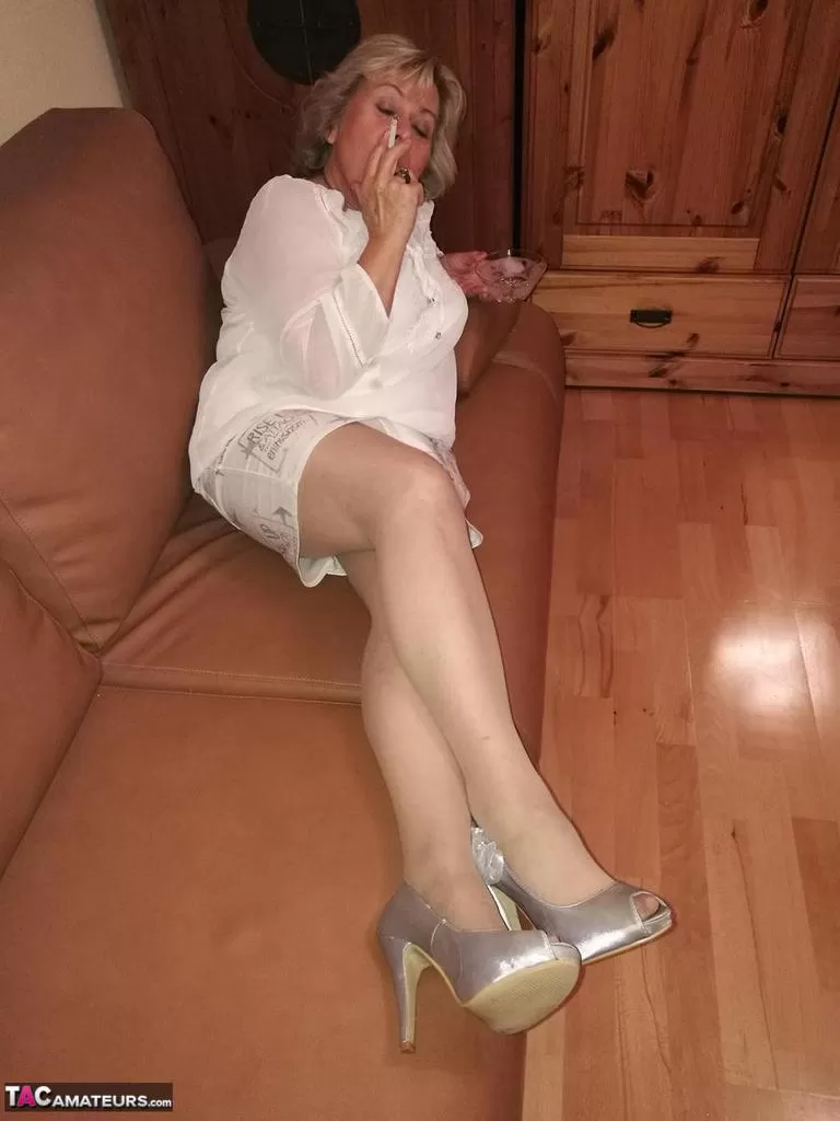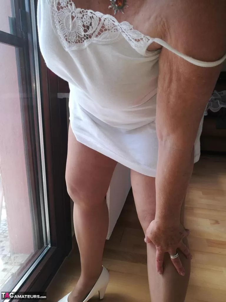 - 4. Милая любительница средних лет Сьюзи натягивает прозрачные колготки, прежде чем обнажиться топлесс.