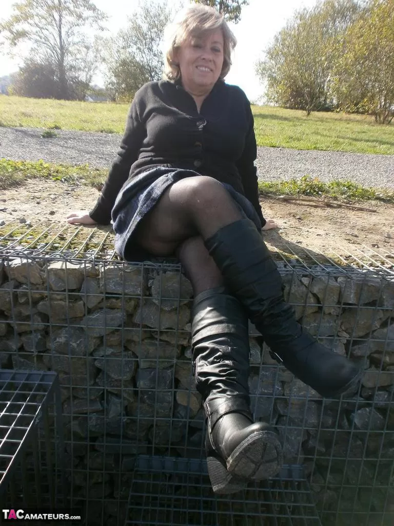 - 3. Горячая зрелая толстушка Даниэлла Инглиш в черных колготках выставляет напоказ свою большую задницу.