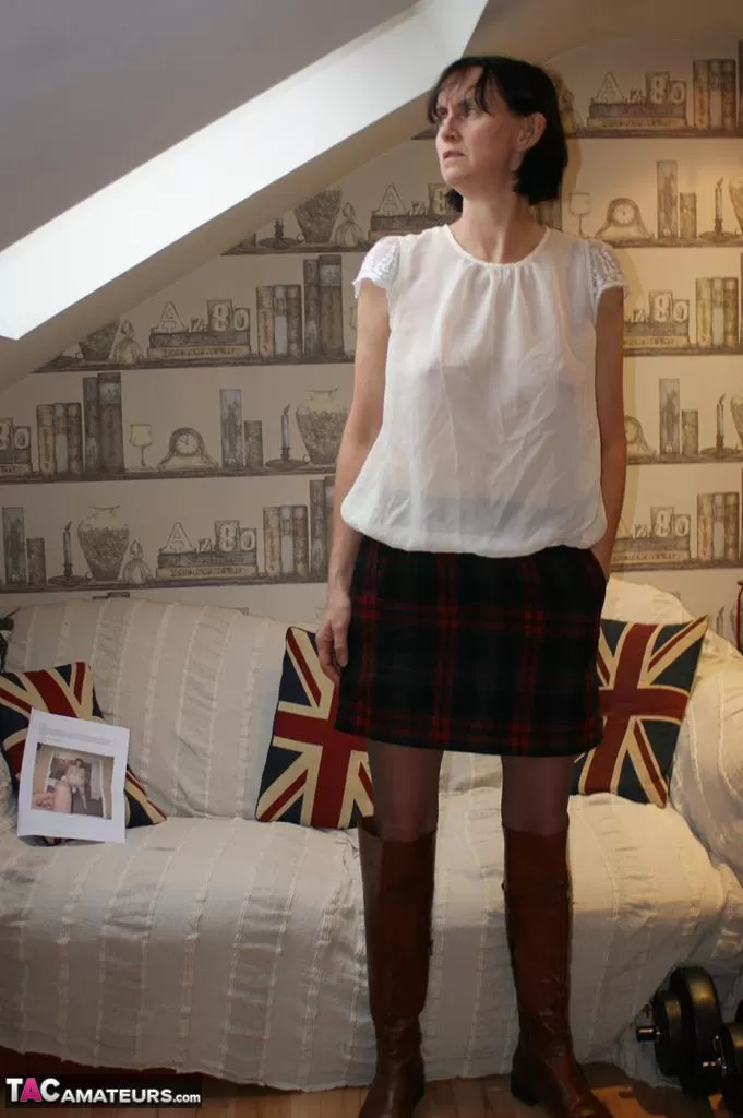 - 3. Зрелая рыжеволосая Виера Белла показывает свои голые ноги во время моделирования не обнаженной.