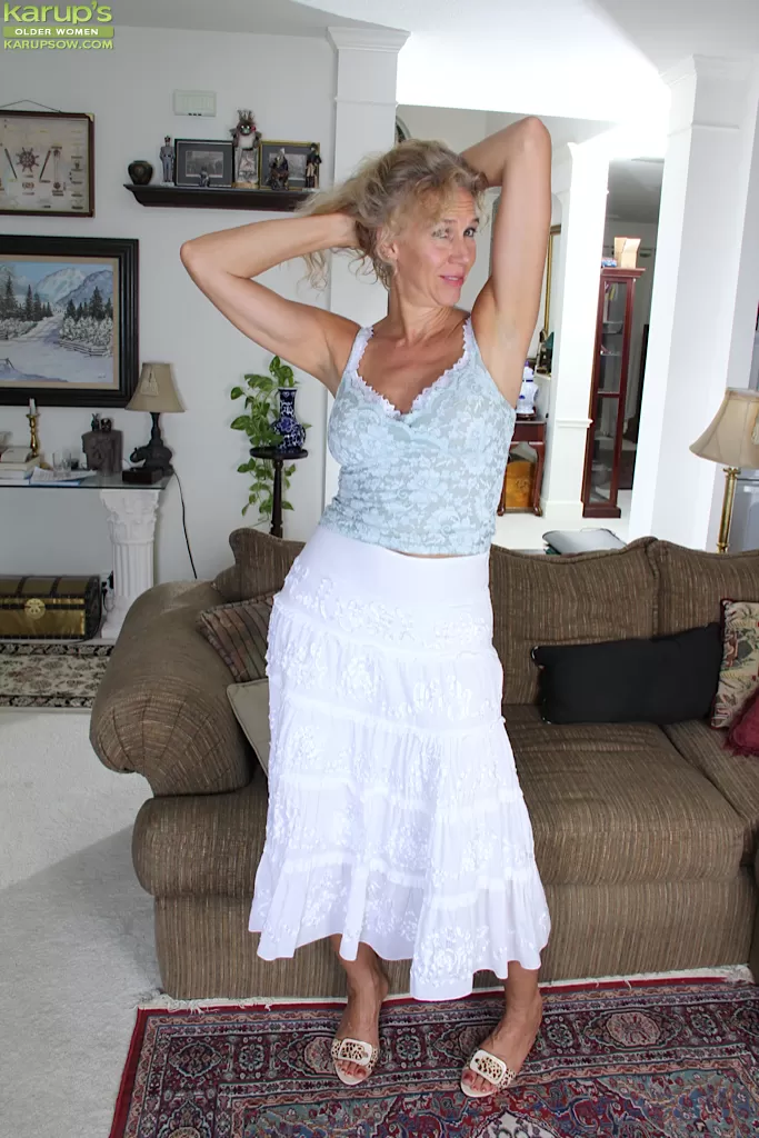 - 4. Зрелая девушка с отвисшими сиськами и дряблым животом раздевается и теребит свою пизду.