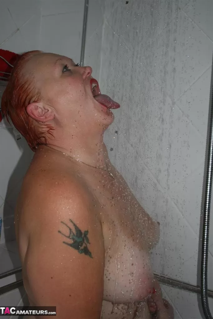 - 4. Пухленькая пожилая леди Мишель смачивает свою бритую киску во время мастурбации в ванне.