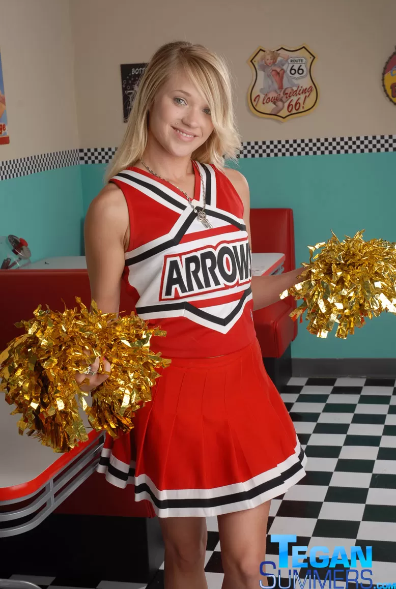 - 4. Озорная болельщица Честити Линн показывает свои крошечные сиськи и бритую киску.