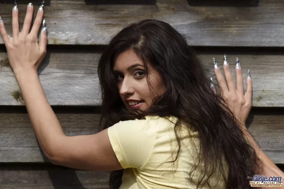 - 3. Грудастая молодая брюнетка Ксюша приседает и растягивается голышом на открытом воздухе в старом сарае.