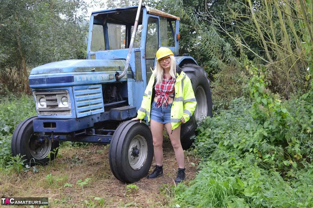 - 4. Голая фермерша распластывается на сене и встает на колени, чтобы показать свою горячую задницу.