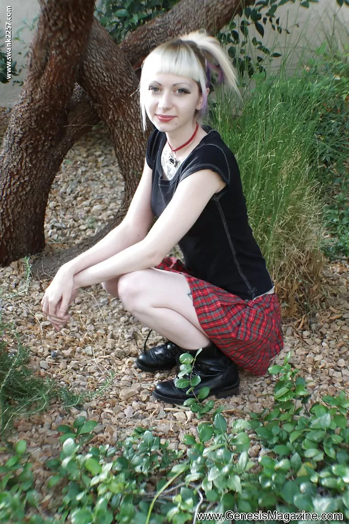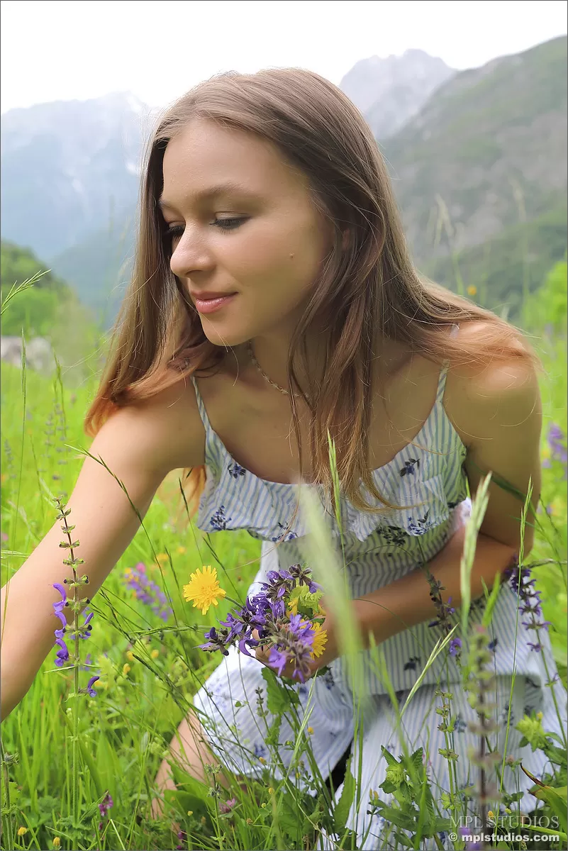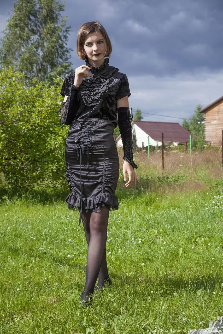 - 2. Скользкая красотка в чулках Анастасия Морна избавляется от своего нижнего белья на открытом воздухе.