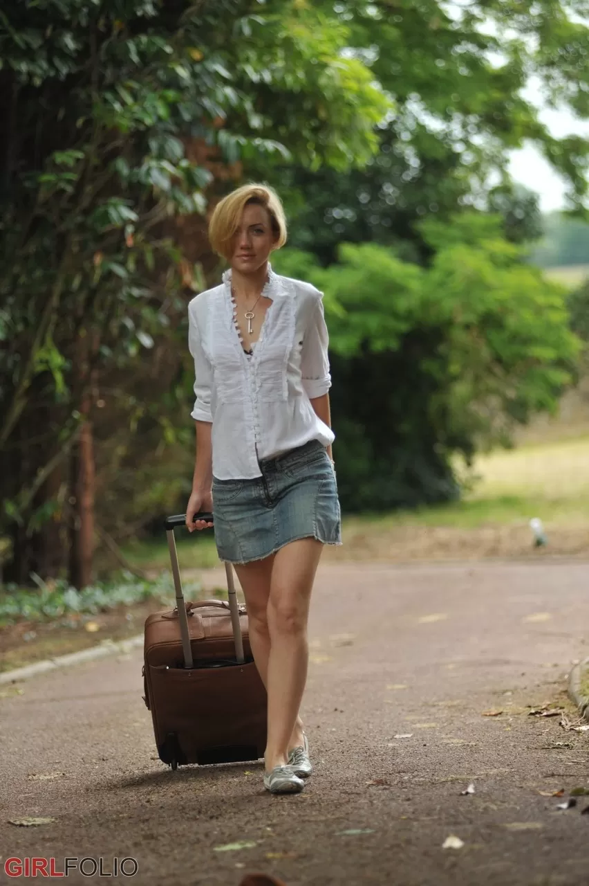 - 5. Коротко стриженная девушка снимает выцветшие джинсы, чтобы показать свою потрясающую задницу на открытом воздухе.
