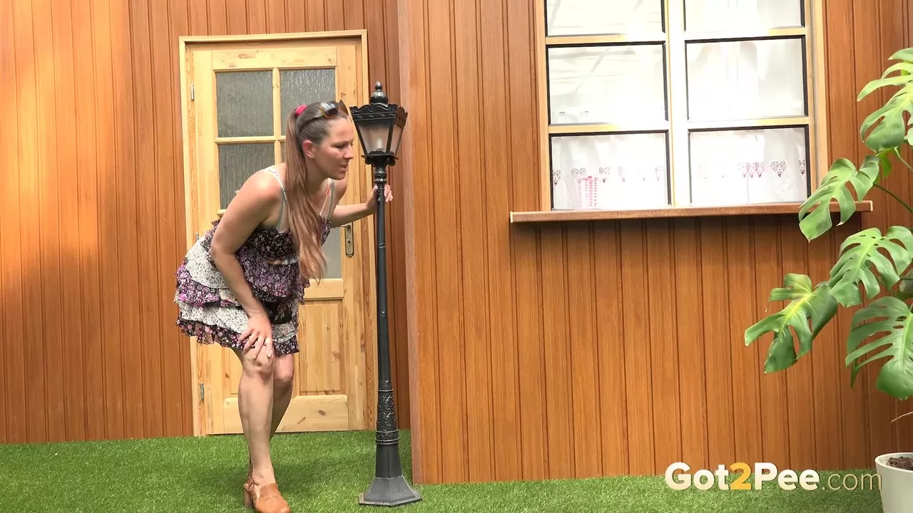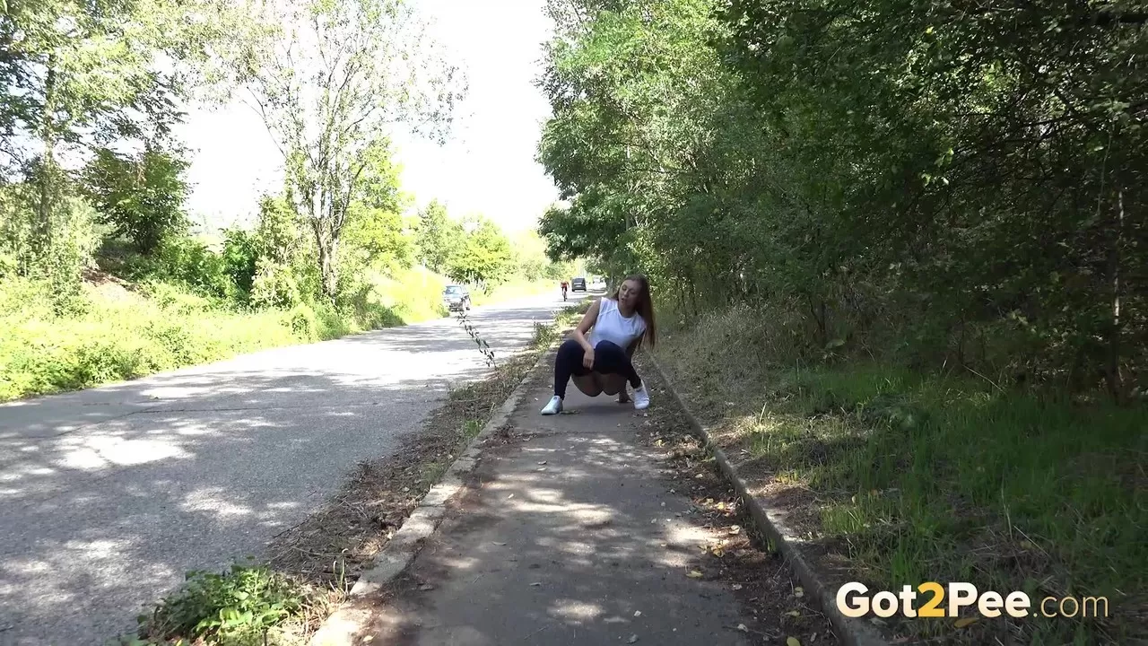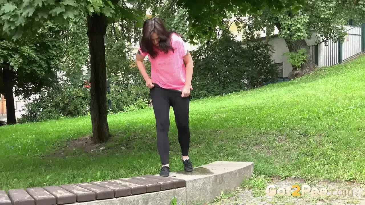 - 5. Любительская женщина спускает свой шланг, чтобы поссать ночью на скамейке в парке.
