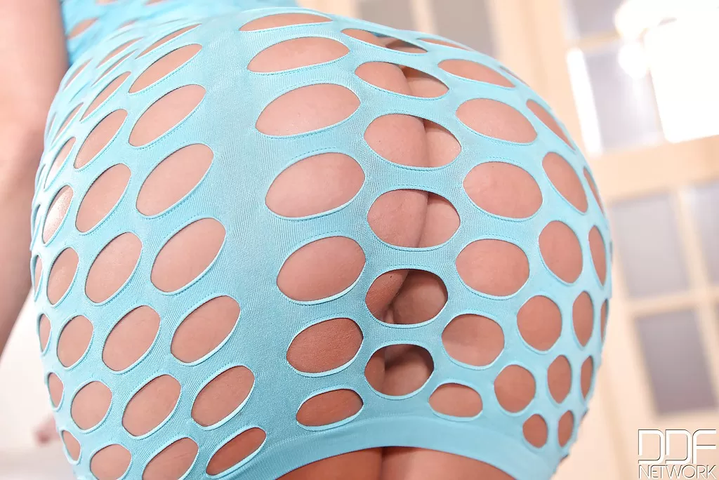 - 2. Белокурая милашка Эльза Джин натягивает черные атласные трусики на тугую попку.