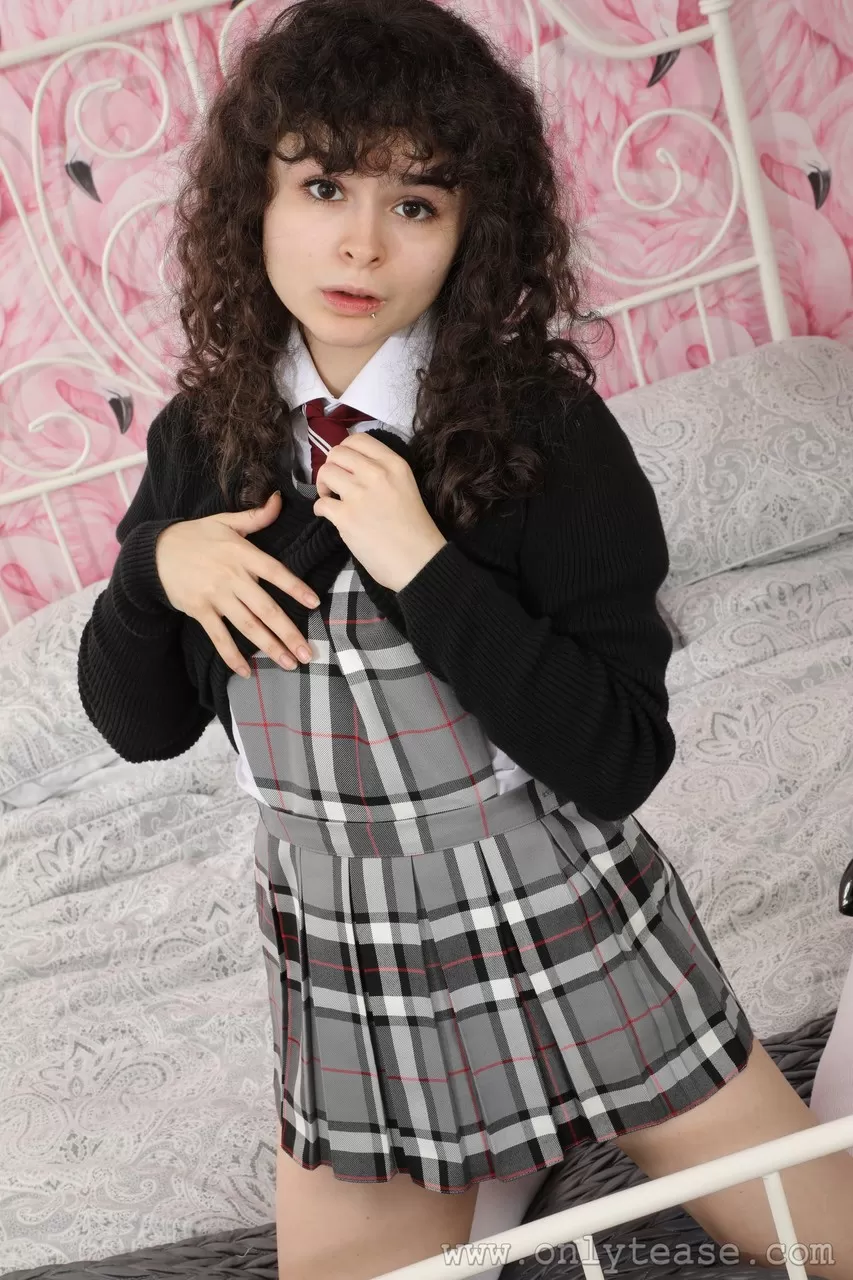 - 4. Светловолосая школьница Кайли Пейдж снимает микро-юбку, чтобы позировать голой в гольфах.
