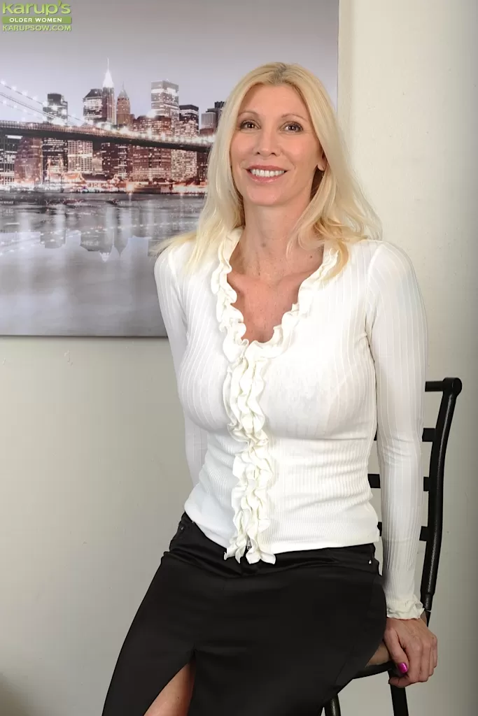 - 1. Очаровательная блондинка принимает великолепные обнаженные позы, находясь на своей кухне.