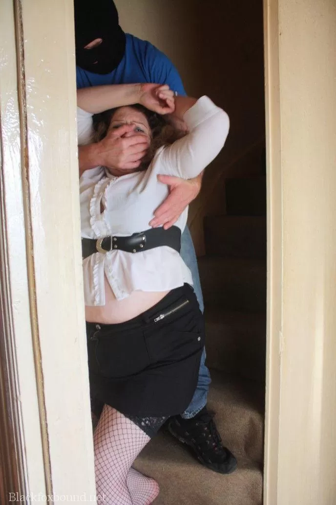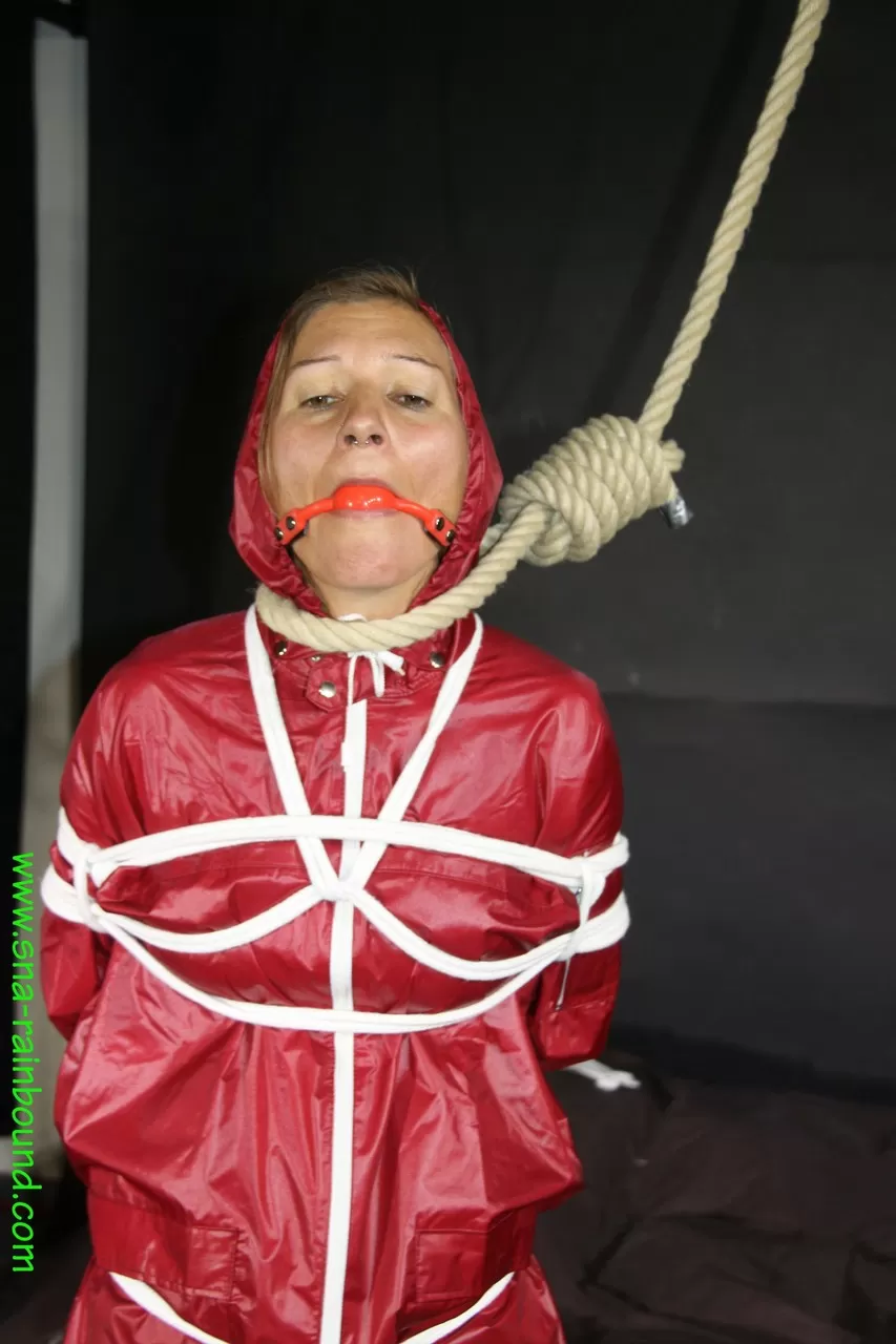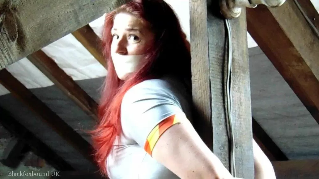 - 5. Белая девушка Пегги поддерживает кляп с шариком, пока ее связывают и надевают на ноги в трусиках.
