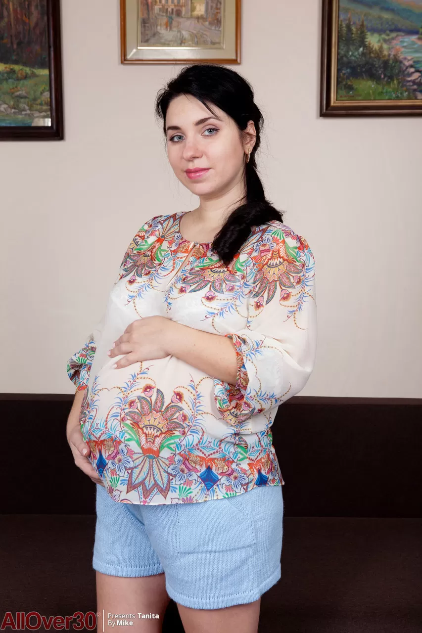 - 4. Беременная цыпочка Моник демонстрирует свой раздутый живот и наполненные молоком сиськи.