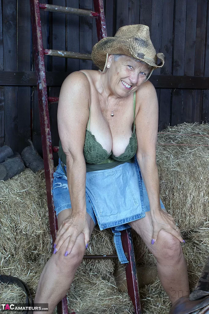 - 4. Старуха Савана скачет верхом на седле в раздевалке, прежде чем обнажить свои большие сиськи.