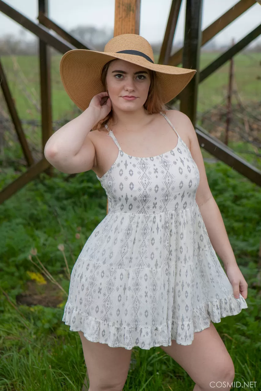 - 1. Деревенская девушка задирает свое платье, обнажая юбку, показывая лысую пизду и задницу.