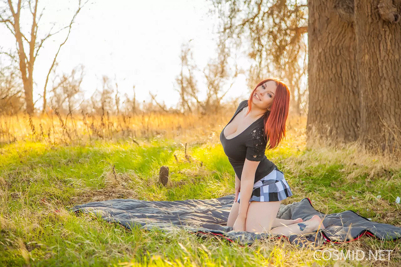 - 1. Симпатичная рыжеволосая Эмма Лу укладывает волосы наверх для своего первого обнаженного появления.