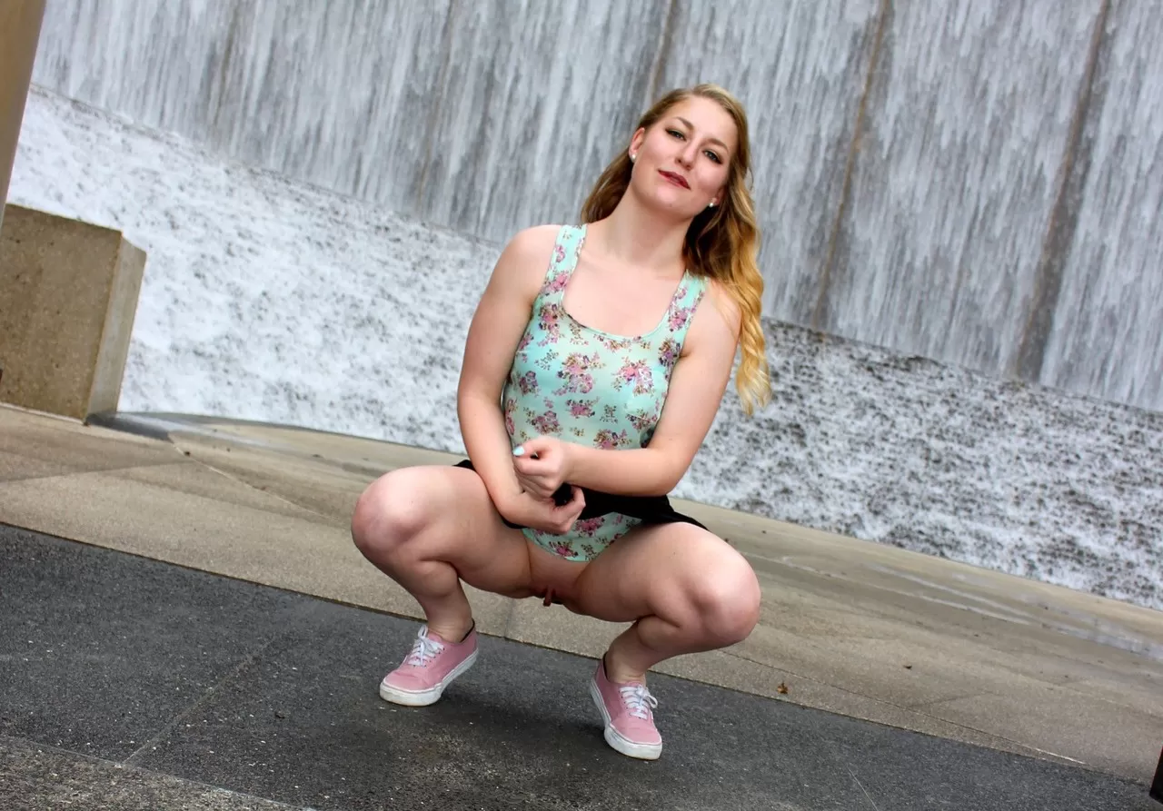 - 2. Блондинка-любительница Сюзи Рокс моделирует топлесс в клетчатой мини-юбке на фоне воздушных шаров.