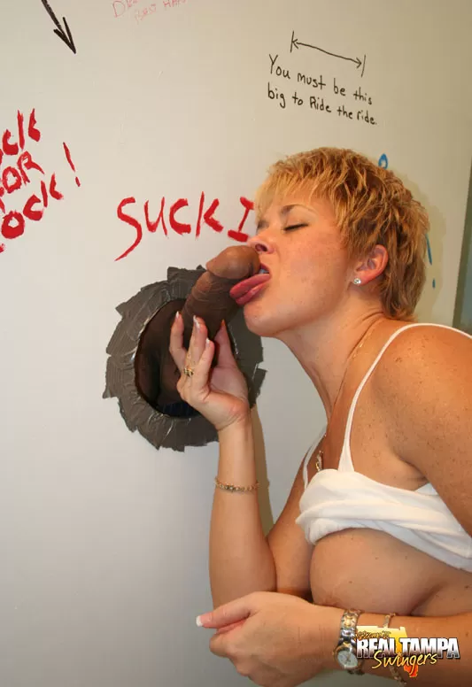 - 2. Светлокожая девушка убирает волосы назад и отсасывает большой черный член.