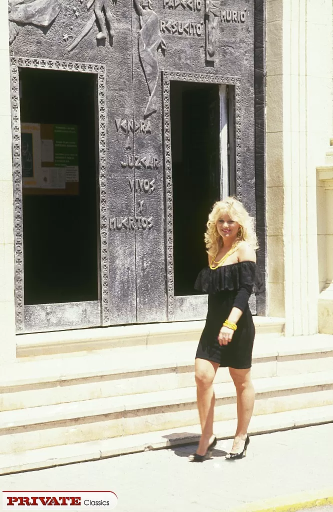 - 1. Белокурая цыпочка из 70-х годов растягивает свою пизду перед трахом и дилдо.
