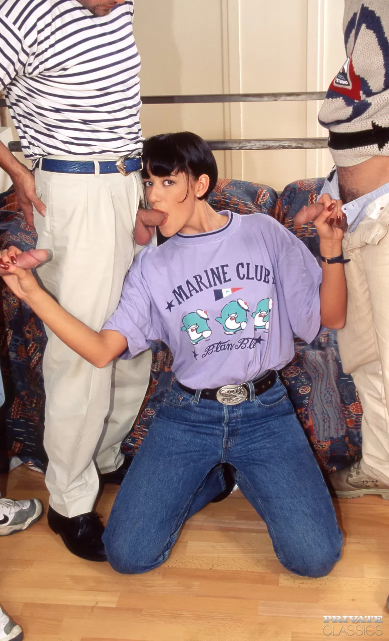 - 3. Темноволосая женщина Кэрол Руж делает двойное проникновение во время сцены групповухи.