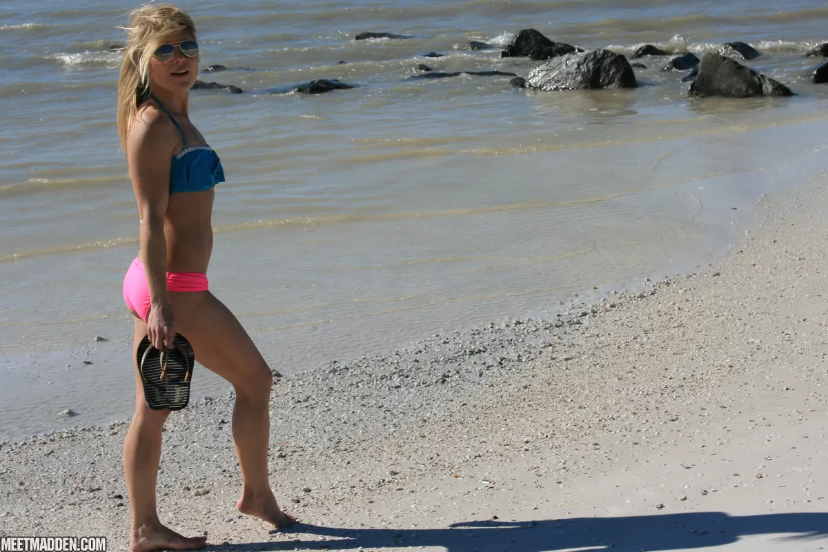 - 2. Любительская модель Ханна Хейс позволяет своим крошечным сиськам выскользнуть из топа бикини.