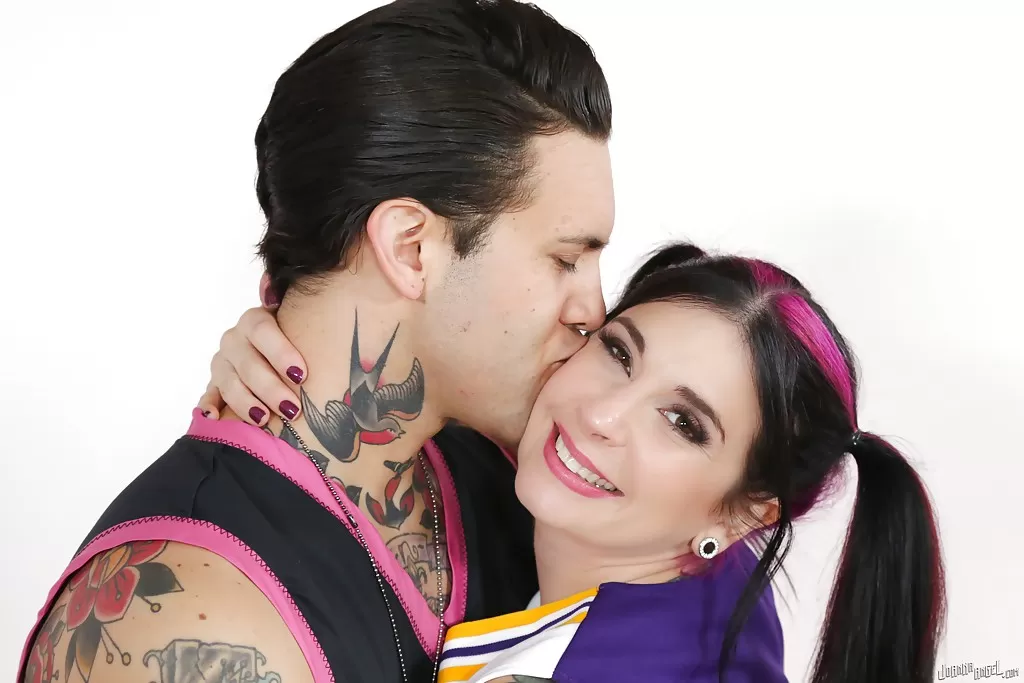 - 5. Скользкая болельщица с красными губами снимает свою униформу и трусики.