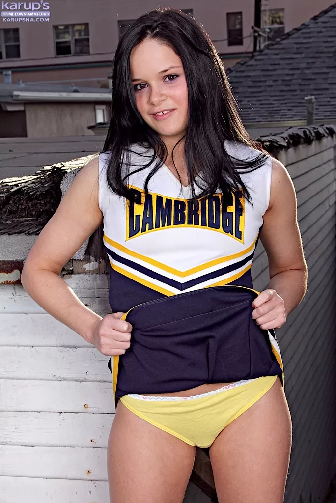 - 3. Молодая болельщица Дженна Росс снимает свою униформу, чтобы позировать обнаженной во внутреннем дворике на крыше.