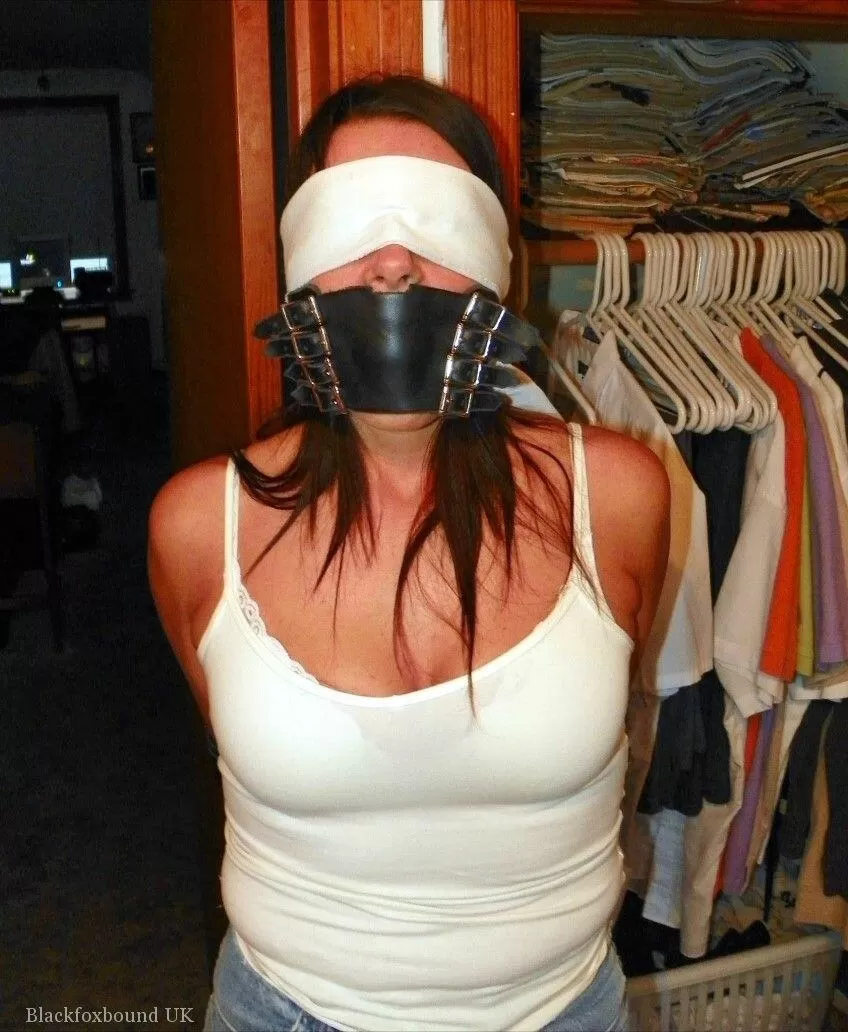 - 4. Белокурую цыпочку оставляют связанной с завязанными глазами и кляпом во рту у входной двери.