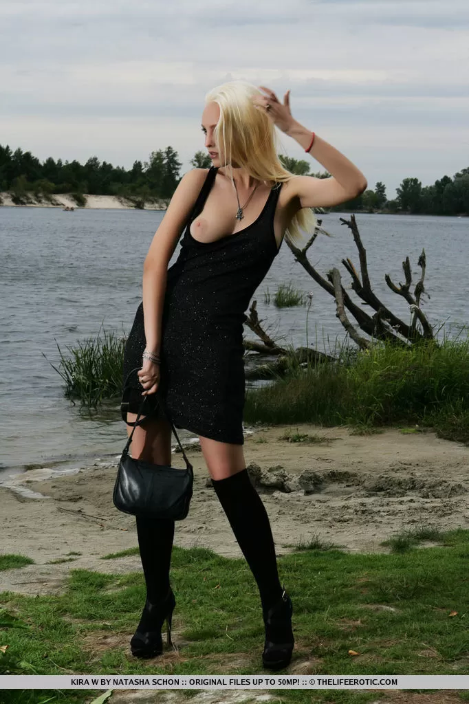 - 2. Сексуальная блондинка Ванда Ласт раздевается догола в белых сапогах до бедер и кепке.