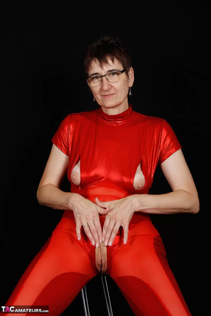 - 4. Непослушная зрелая леди снимает трусики и теребит свою пизду.