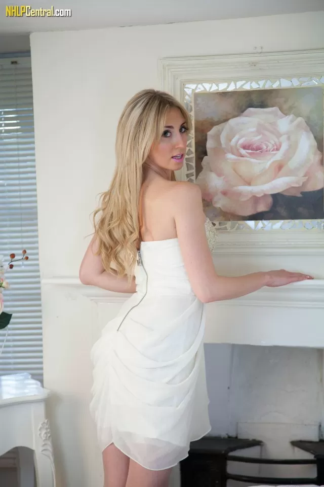 - 1. Светловолосая фотомодель Эмили Блум засовывает палец в пизду, позируя полуобнаженной.
