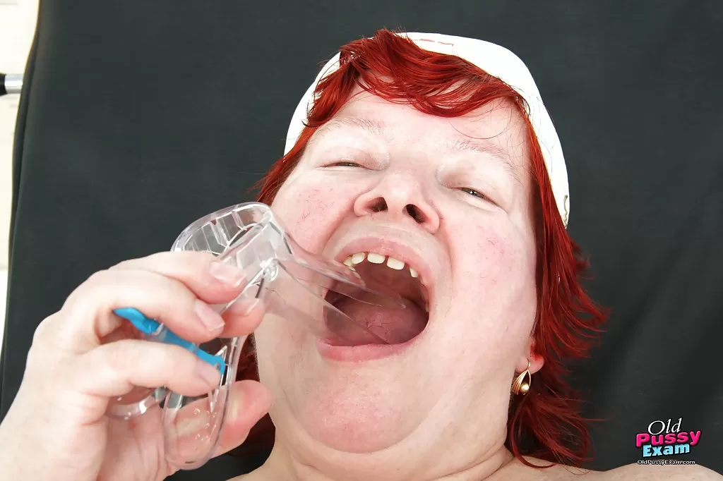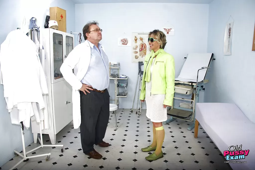 - 3. Пожилая блондинка леди Ленни раздевается для осмотра непослушным врачом-гинекологом.