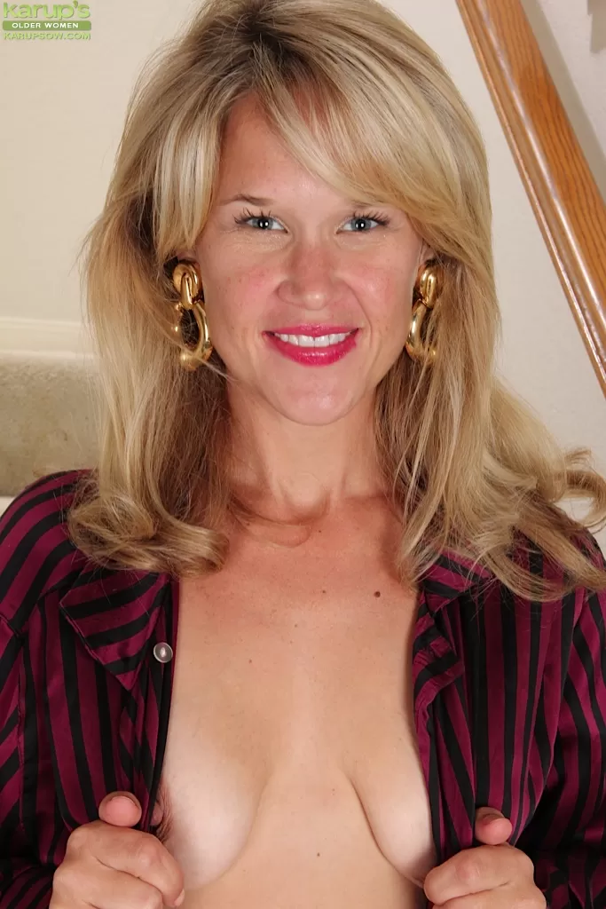 - 4. Пожилая блондинка Андреа Энн снимает лифчик и трусики, чтобы позировать обнаженной в сетчатых чулках.