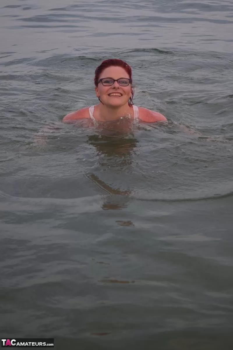 - 4. Брюнетка любительница показывает свои огромные сиськи, когда она раздевается на пляже.