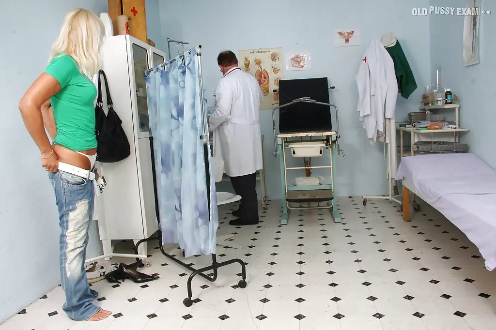 - 1. Зрелая брюнетка проходит обследование и писает в кабинете гинеколога.