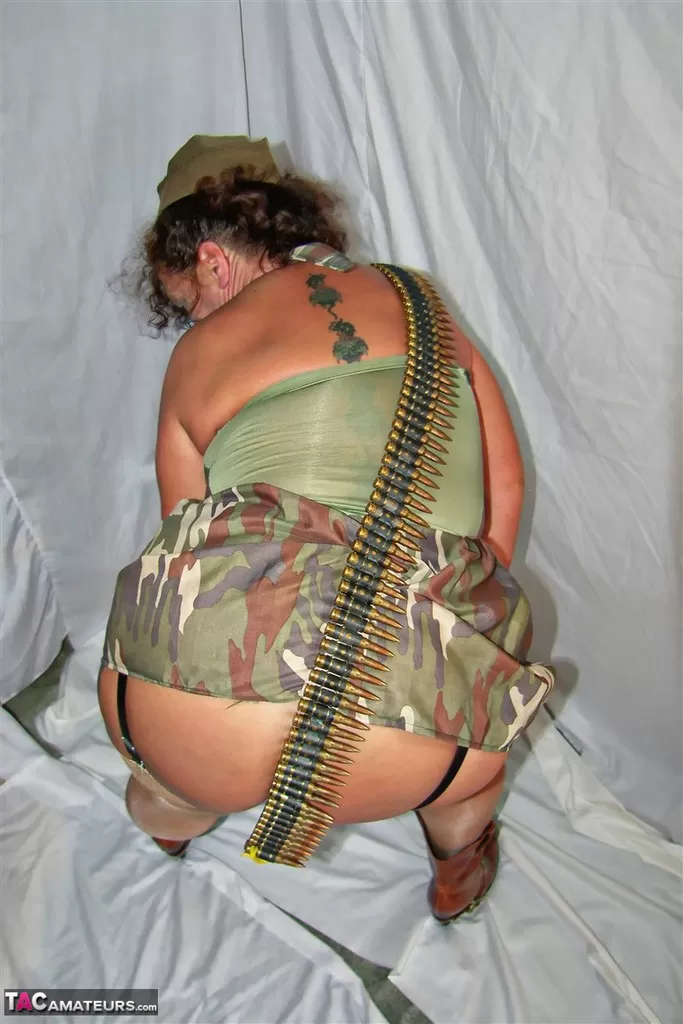 - 4. Горячая мамаша в военной форме обнажает свои соблазнительные татуированные изгибы.
