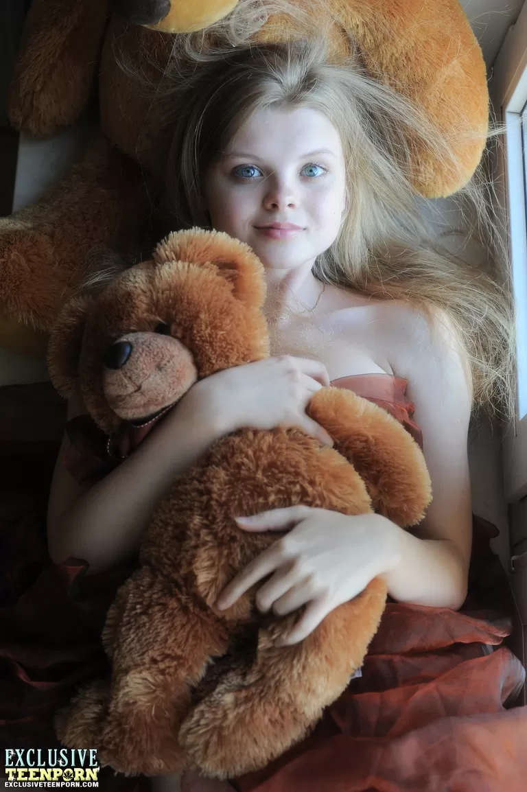 - 5. Гламурная блондинка Велеса Уил раздевается, чтобы обнажить лысую киску подростка снаружи.