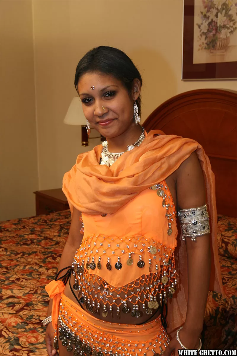- 5. Индийская модель с татуировками обнажает свои упругие сиськи в традиционной одежде.