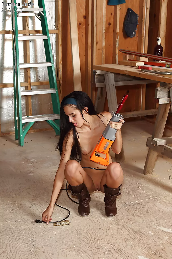 - 5. Возбужденная брюнетка Дженни раздвигает ноги, чтобы получить удовольствие от машинного дилдо.