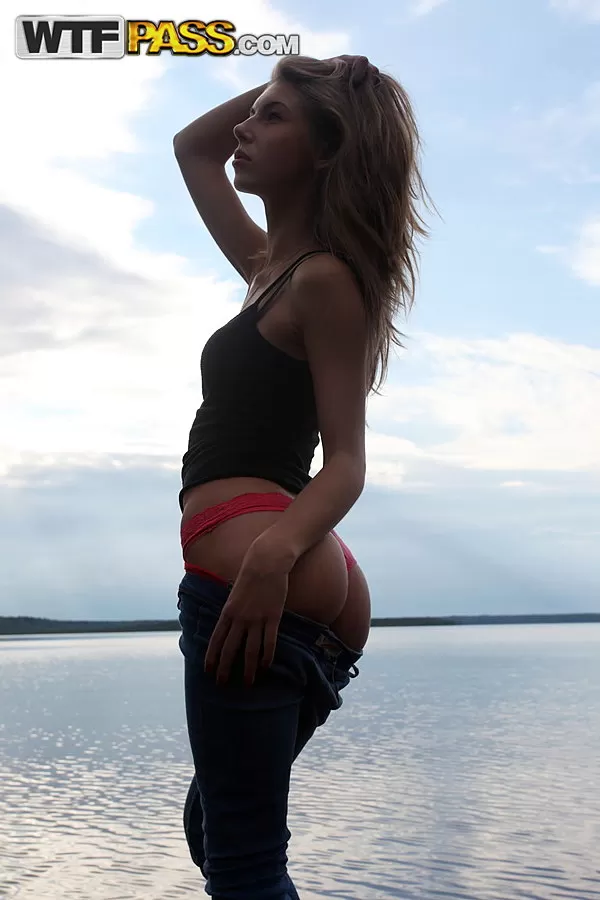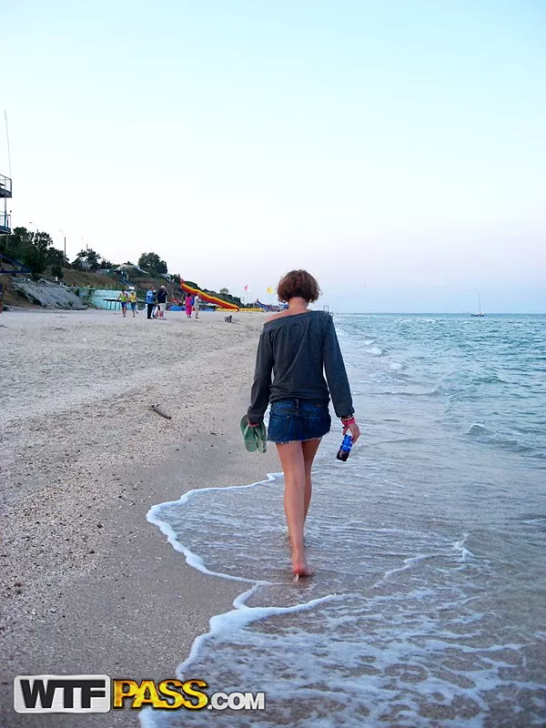 - 2. Симпатичная брюнетка шлюха с милой попкой и сиськами раздевается на открытом воздухе.