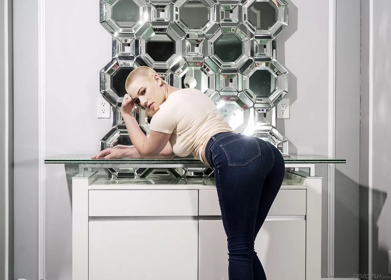 - 4. Миниатюрная рыжеволосая девушка с волосами до самой тугой попки Катя Блу мастурбирует в обнаженном виде.