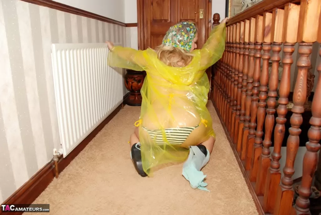 - 5. Соблазнительная зрелая леди в очках позирует в красной майке без трусиков.