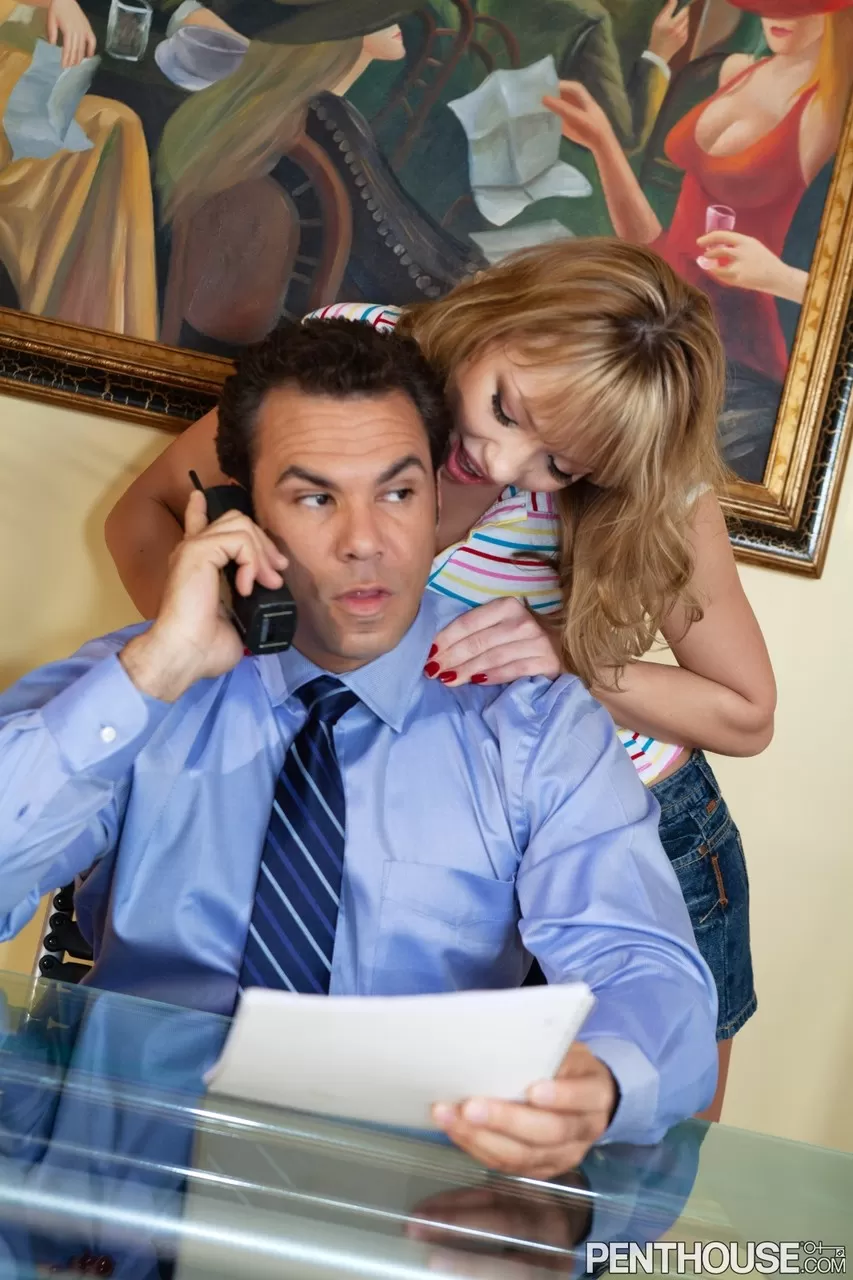 - 4. Очаровательная девушка со светлыми волосами раздевается до полосатых носков OTK в сольном действии.