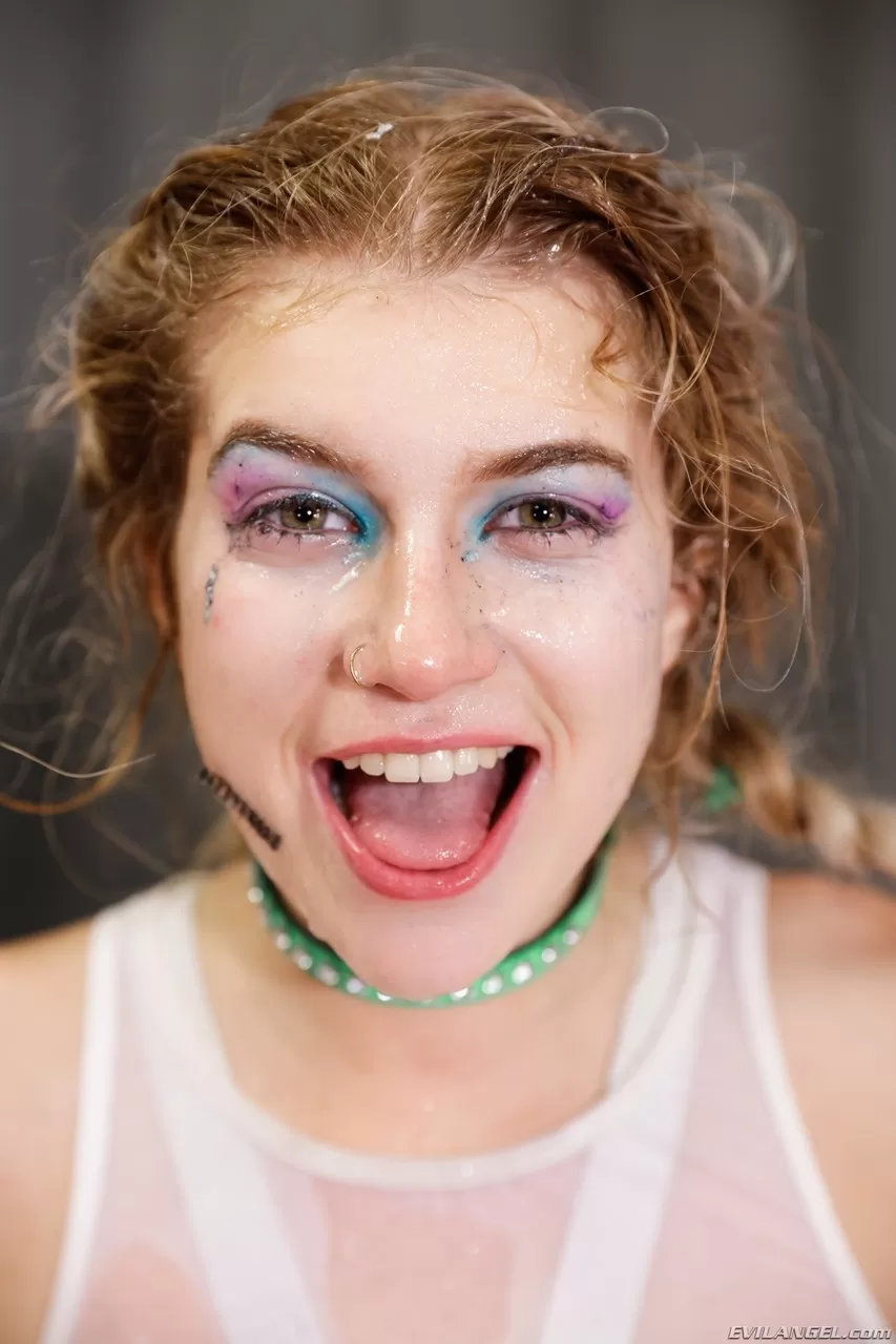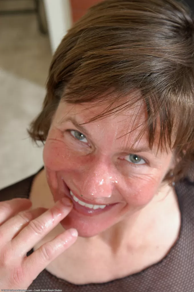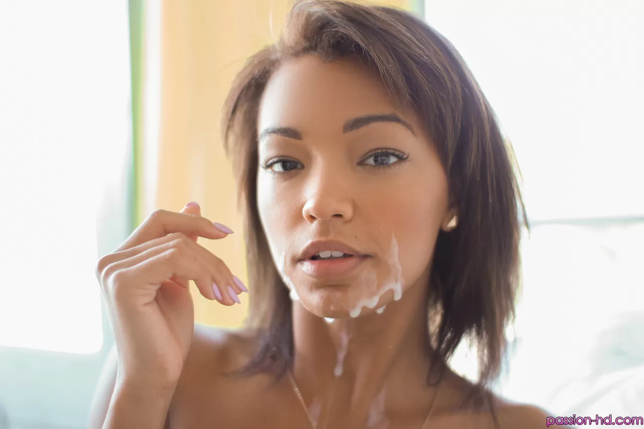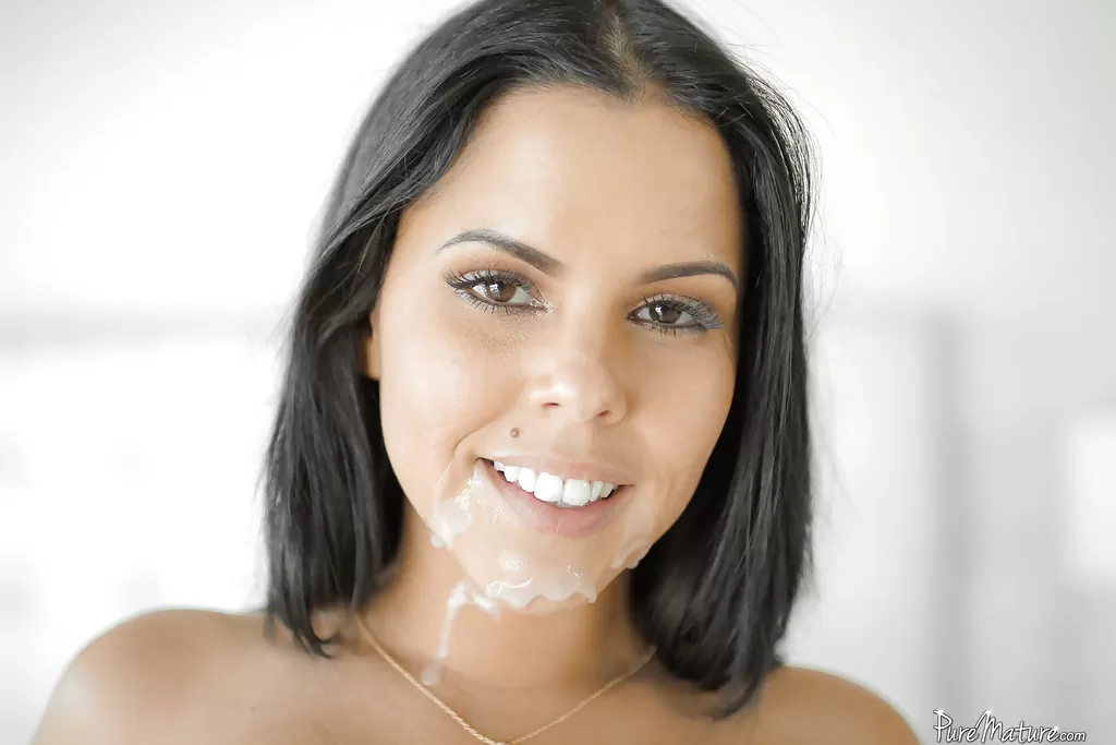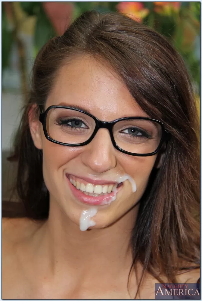 - 5. Возбужденная темноволосая сочная Джо получает большую порцию горячей спермы на лицо после минета.