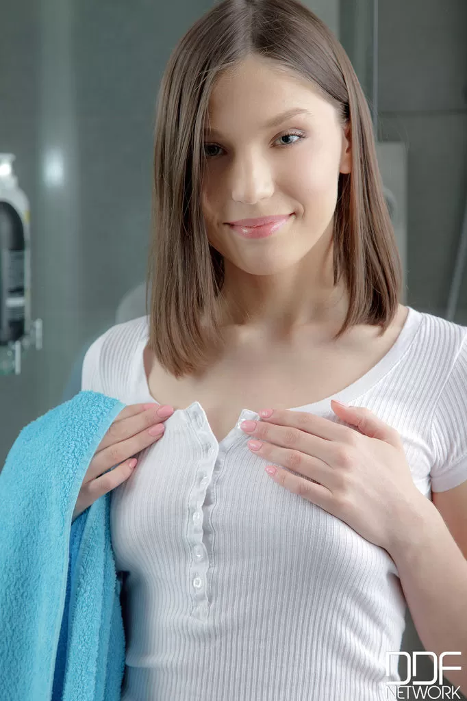 - 2. Сексуальная молоденькая Кейра Блу раздевается на кровати с балдахином для великолепных обнаженных поз.