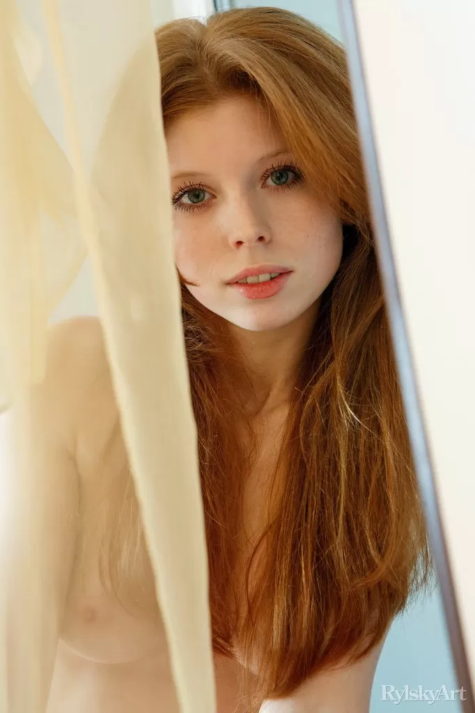 - 1. Натуральная рыжеволосая Ринна Ли освобождает свое молодое девичье тело от всей одежды.