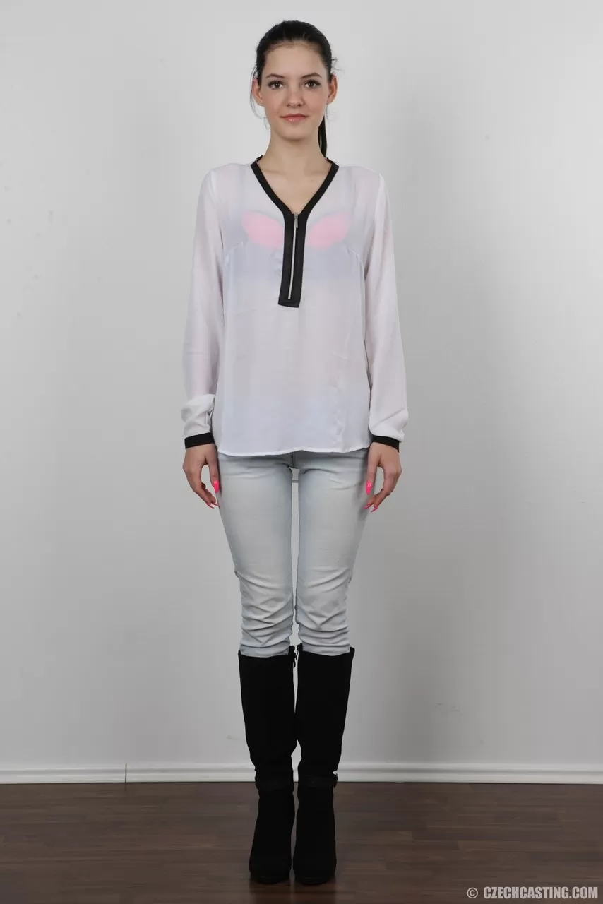 - 3. Молоденькая блондинка Кася снимает одежду и шапочку, пока не остается только в белых носках.